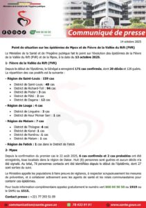 Sénégal : Communiqué, Point de situation sur les épidémies de Mpox et de Fièvre de la Vallée du Rift (FVR) à la date du 13 octobre 2025