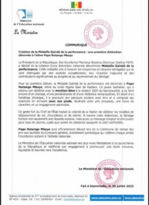 Par cette distinction nationale le chef de l’état Bassirou Diomaye Faye veut honorer l’exemplarité et le courage des jeunes Sénégalais.