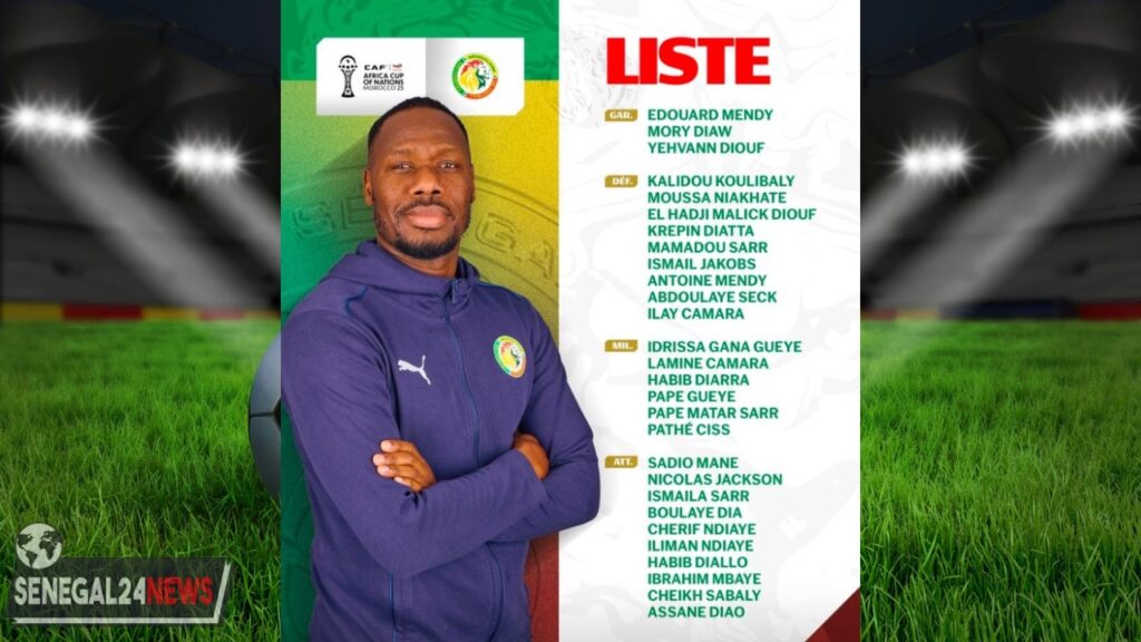 Le sélectionneur national Pape Thiaw a rendu publique la liste des 28 joueurs sénégalais retenus pour disputer la Coupe d’Afrique des Nations 2025, prévue au Maroc. Une sélection marquée par un savant équilibre entre cadres expérimentés et jeunes talents, dans la continuité de l’ambition sénégalaise de rester au sommet du football africain.