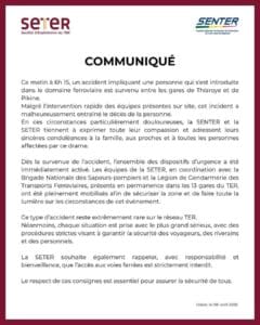 En ces circonstances particulièrement douloureuses, la SETER et la SENTER tiennent à exprimer toute leur comparaison et adressent leurs sincères condoléances à la famille, aux proches et à toutes les personnes affectées par ce drame.