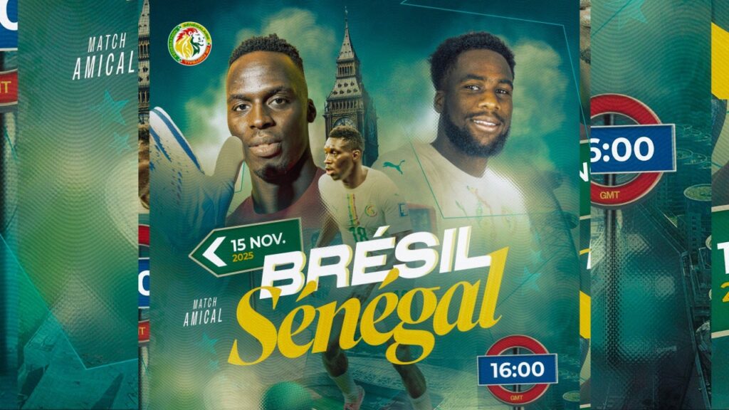 Le Sénégal retrouve la scène internationale ce mercredi avec une affiche de haut niveau face au Brésil, dans le cadre d’une rencontre amicale très attendue. Le duel se déroule à l’Emirates Stadium de Londres, un cadre prestigieux pour mesurer la forme des Lions face à l’une des nations les plus titrées du football mondial. Le coup d’envoi est programmé à 16h00 GMT et la rencontre sera retransmise en direct sur la RTS, permettant aux supporters sénégalais de suivre l’événement où qu’ils se trouvent.